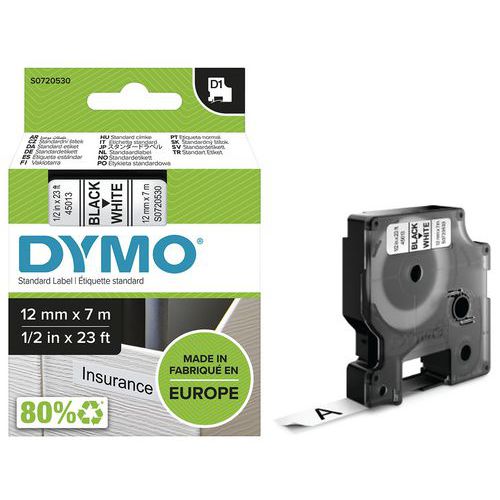 DYMO D1 12-mm adhesive polyester tape cartridge, ultra-durable backing. Perfect for flat surfaces and for a wide range of applications. Highly resistant to UV, oils, greases and solvents. Easy to remove, leaving no adhesive residue. Available in different colours, widths and backgrounds. Adhesive polyester tape, made in Europe.
