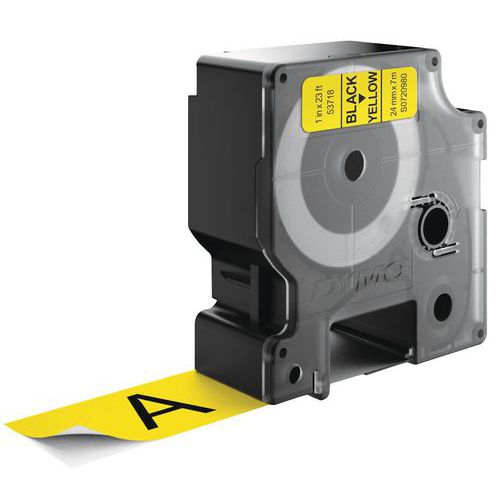 - Dymo D1 adhesive polyester tape cartridge, ultra-durable backing.