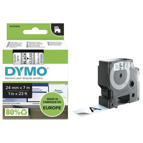 - Dymo D1 adhesive polyester tape cartridge, ultra-durable backing.
