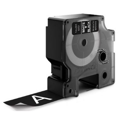 - Dymo D1 adhesive polyester tape cartridge, ultra-durable backing.