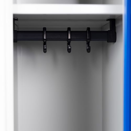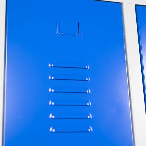 Robust dirty industry warehouse locker, supplied fully disassembled as flat-pack. Durable metal construction with an attractive electrostatic powder-coated finish. One upper compartment and one lower wardrobe space divided into two compartments by a panel. Reinforced door with concealed hinges and silent plastic damper. Stamped label holder and double louvred door to ensure air circulation. Convenient locker with wide 115° door opening.