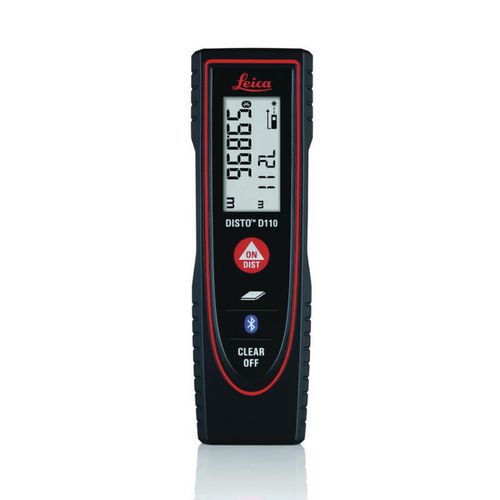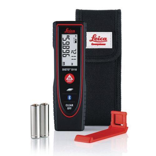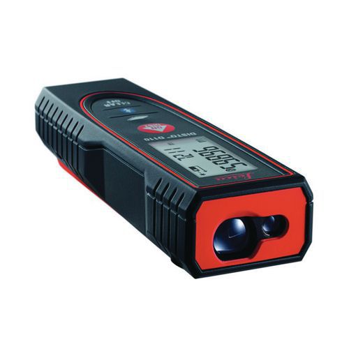 - Laser measurer with charger and wrist strap. Range up to 30 m. Black LCD screen with white lettering. Laser measurer supplied with charger and wrist strap. Range up to 30 m. Black LCD screen with white lettering