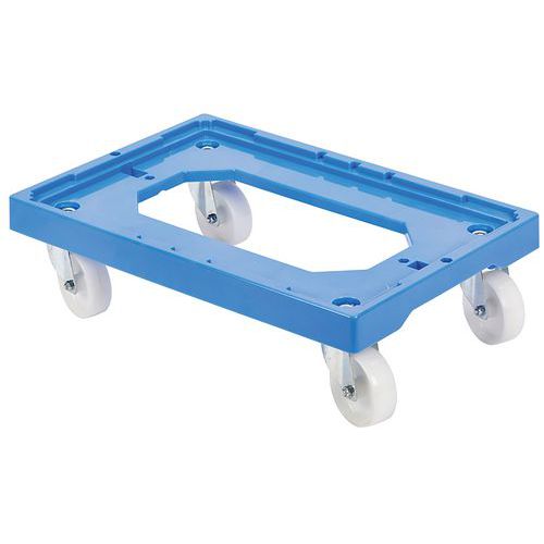 | Product Name | Dolly base with 4 swivel wheels, Colour: Blue, O/A length: 613 mm, O/A width: 414 mm, O/A height: 135 mm |