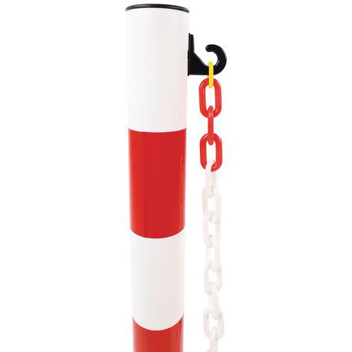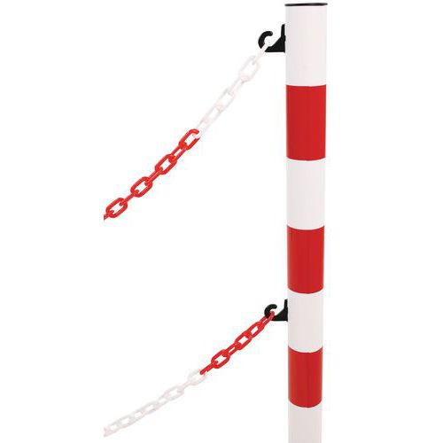 Barrier kit includes: 2 PVC posts 2x 12 metres of chain Ø 6 mm 2 bases to ballast.