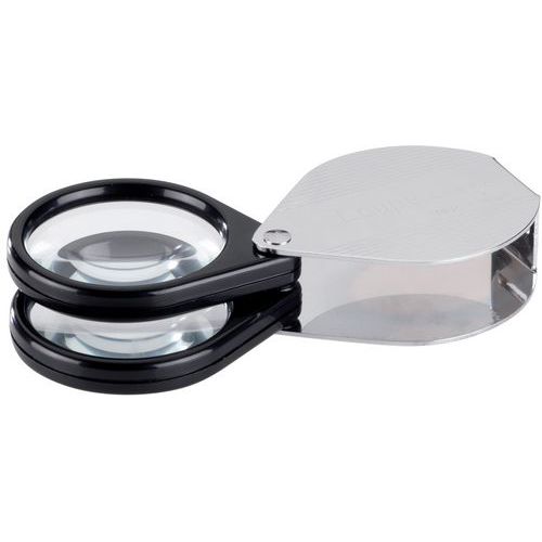 - Folding magnifier in metal casing with 2 biconvex lenses, diameter 36 mm.