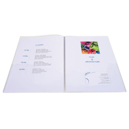 | Product Name | Double-pocket presentation folder, Capacity (Number of sheets): 100, Material: Polypropylene |