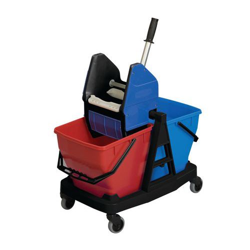Cleaning trolley with press - 2x15 l - Manutan Expert SKU : MIG3311304