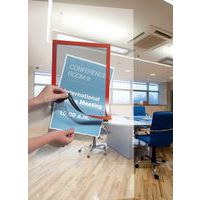 A4 document display frame. Thanks to the repositionable adhesive back, the frame sticks to and detaches from any smooth or rigid surfaces, such as walls or doors. If attached to a glass surface, both sides of the document can be read. Documents can be held secure and updated quickly and easily thanks to the magnetic surround. Can be used in portrait or landscape format.