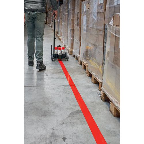 - Demarcates walkways, aisles and loading zones, optimises traffic flow in factories, warehouses, production areas and car parks.