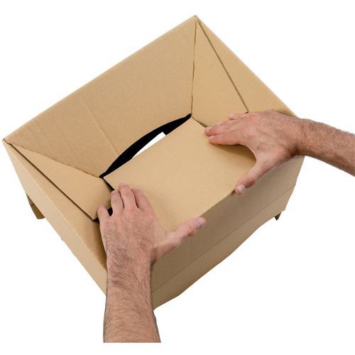 Preformed body for ultra-fast unfolding. Solid with double thickness base. Cardboard box with side handles. Prepare your boxes in a flash