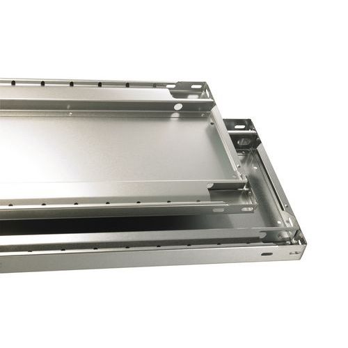 Solid galvanised or grey epoxy shelf for Easy-Fix shelving. Easy to insert into the shelf clip supports for simple installation. Steel is triple folded depth-wise for a high level of stability. Extra reinforcement from doubling the material on the laying edges. Allows you to quickly create an additional floor for more storage space. Assembly : Self-assembly Customer warranty : 5 years Industrial sector