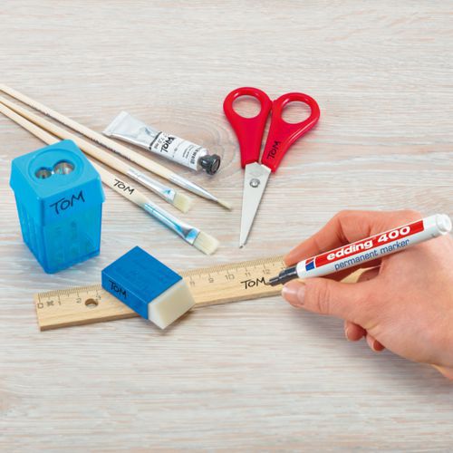Permanent fine tip low-odour marker for writing on almost any material: paper, cardboard, metal, glass, etc. Waterproof and resistant to light and abrasion. Non-toxic indelible ink, does not contain xylene or toluene. Fast-drying.
