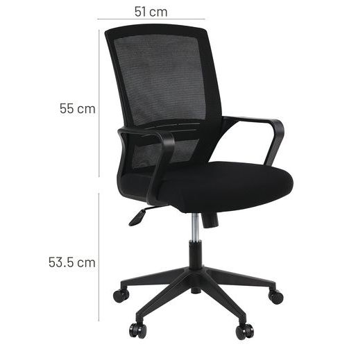 | Product Name | Elane black office chair, With armrest: yes, Type of leg: Rollers, Seating material: Fabric, Headrest: no |