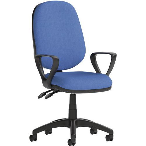 Breathable, height-adjustable mesh back. Height adjustable, padded lumbar support. Dished seat design. Twin lever mechanism for seat height and backrest tilt adjustment. Built to EN1335 standards. ANSI/BIFMAX 5.1-2017 strength and endurance tested. PCB: Permanent contact backrest feature. The 5-star base with castors allows the chair to easily move to where it is needed. The eclipse plus 2 deluxe mesh back has a wider backrest and an additional height adjustable lumbar pad.