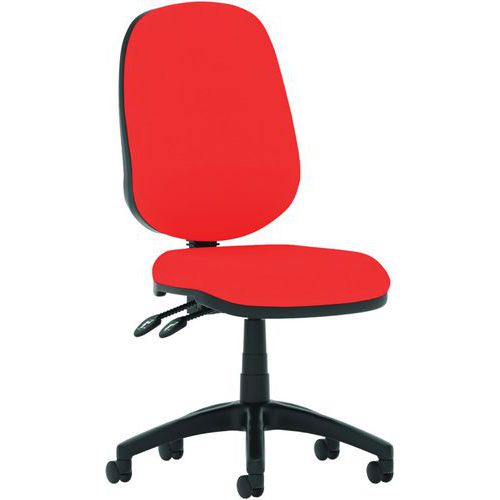 Breathable, height-adjustable mesh back. Height adjustable, padded lumbar support. Dished seat design. Twin lever mechanism for seat height and backrest tilt adjustment. Built to EN1335 standards. ANSI/BIFMAX 5.1-2017 strength and endurance tested. PCB: Permanent contact backrest feature. The 5-star base with castors allows the chair to easily move to where it is needed. The eclipse plus 2 deluxe mesh back has a wider backrest and an additional height adjustable lumbar pad.