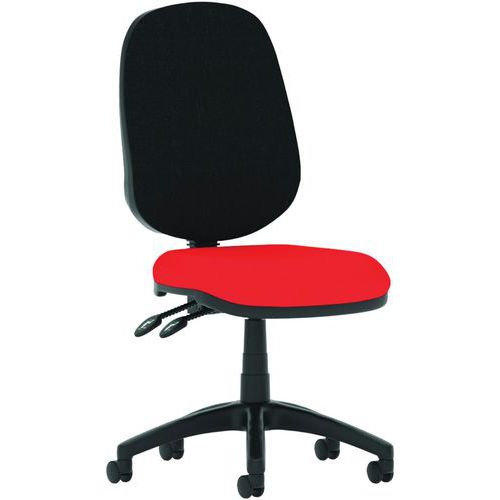 Breathable, height-adjustable mesh back. Height adjustable, padded lumbar support. Dished seat design. Twin lever mechanism for seat height and backrest tilt adjustment. Built to EN1335 standards. ANSI/BIFMAX 5.1-2017 strength and endurance tested. PCB: Permanent contact backrest feature. The 5-star base with castors allows the chair to easily move to where it is needed. The eclipse plus 2 deluxe mesh back has a wider backrest and an additional height adjustable lumbar pad.