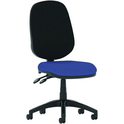 Breathable, height-adjustable mesh back. Height adjustable, padded lumbar support. Dished seat design. Twin lever mechanism for seat height and backrest tilt adjustment. Built to EN1335 standards. ANSI/BIFMAX 5.1-2017 strength and endurance tested. PCB: Permanent contact backrest feature. The 5-star base with castors allows the chair to easily move to where it is needed. The eclipse plus 2 deluxe mesh back has a wider backrest and an additional height adjustable lumbar pad.