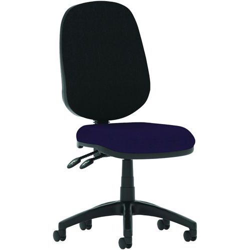 Breathable, height-adjustable mesh back. Height adjustable, padded lumbar support. Dished seat design. Twin lever mechanism for seat height and backrest tilt adjustment. Built to EN1335 standards. ANSI/BIFMAX 5.1-2017 strength and endurance tested. PCB: Permanent contact backrest feature. The 5-star base with castors allows the chair to easily move to where it is needed. The eclipse plus 2 deluxe mesh back has a wider backrest and an additional height adjustable lumbar pad.