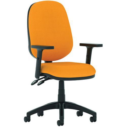Breathable, height-adjustable mesh back. Height adjustable, padded lumbar support. Dished seat design. Twin lever mechanism for seat height and backrest tilt adjustment. Built to EN1335 standards. ANSI/BIFMAX 5.1-2017 strength and endurance tested. PCB: Permanent contact backrest feature. The 5-star base with castors allows the chair to easily move to where it is needed. The eclipse plus 2 deluxe mesh back has a wider backrest and an additional height adjustable lumbar pad.