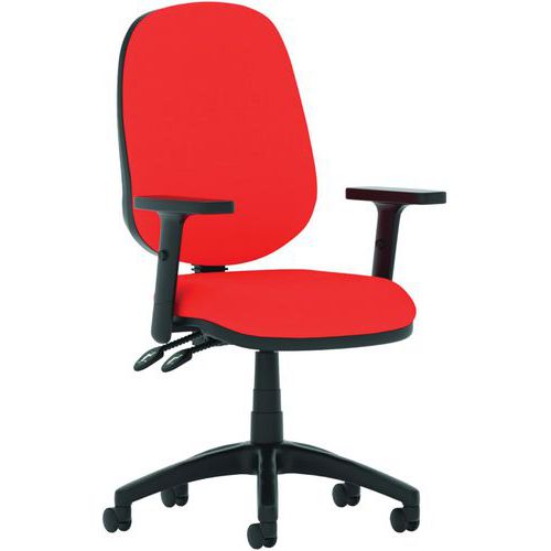 Breathable, height-adjustable mesh back. Height adjustable, padded lumbar support. Dished seat design. Twin lever mechanism for seat height and backrest tilt adjustment. Built to EN1335 standards. ANSI/BIFMAX 5.1-2017 strength and endurance tested. PCB: Permanent contact backrest feature. The 5-star base with castors allows the chair to easily move to where it is needed. The eclipse plus 2 deluxe mesh back has a wider backrest and an additional height adjustable lumbar pad.