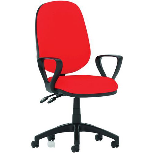Breathable, height-adjustable mesh back. Height adjustable, padded lumbar support. Dished seat design. Twin lever mechanism for seat height and backrest tilt adjustment. Built to EN1335 standards. ANSI/BIFMAX 5.1-2017 strength and endurance tested. PCB: Permanent contact backrest feature. The 5-star base with castors allows the chair to easily move to where it is needed. The eclipse plus 2 deluxe mesh back has a wider backrest and an additional height adjustable lumbar pad.