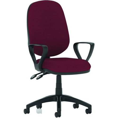 Breathable, height-adjustable mesh back. Height adjustable, padded lumbar support. Dished seat design. Twin lever mechanism for seat height and backrest tilt adjustment. Built to EN1335 standards. ANSI/BIFMAX 5.1-2017 strength and endurance tested. PCB: Permanent contact backrest feature. The 5-star base with castors allows the chair to easily move to where it is needed. The eclipse plus 2 deluxe mesh back has a wider backrest and an additional height adjustable lumbar pad.