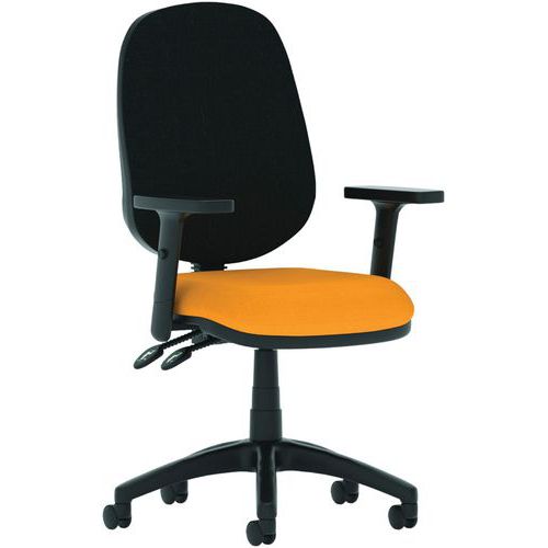 Breathable, height-adjustable mesh back. Height adjustable, padded lumbar support. Dished seat design. Twin lever mechanism for seat height and backrest tilt adjustment. Built to EN1335 standards. ANSI/BIFMAX 5.1-2017 strength and endurance tested. PCB: Permanent contact backrest feature. The 5-star base with castors allows the chair to easily move to where it is needed. The eclipse plus 2 deluxe mesh back has a wider backrest and an additional height adjustable lumbar pad.