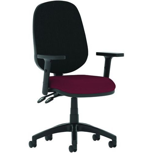 Breathable, height-adjustable mesh back. Height adjustable, padded lumbar support. Dished seat design. Twin lever mechanism for seat height and backrest tilt adjustment. Built to EN1335 standards. ANSI/BIFMAX 5.1-2017 strength and endurance tested. PCB: Permanent contact backrest feature. The 5-star base with castors allows the chair to easily move to where it is needed. The eclipse plus 2 deluxe mesh back has a wider backrest and an additional height adjustable lumbar pad.