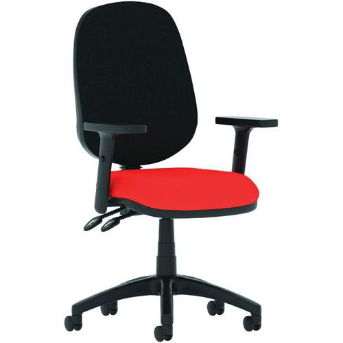 Breathable, height-adjustable mesh back. Height adjustable, padded lumbar support. Dished seat design. Twin lever mechanism for seat height and backrest tilt adjustment. Built to EN1335 standards. ANSI/BIFMAX 5.1-2017 strength and endurance tested. PCB: Permanent contact backrest feature. The 5-star base with castors allows the chair to easily move to where it is needed. The eclipse plus 2 deluxe mesh back has a wider backrest and an additional height adjustable lumbar pad.
