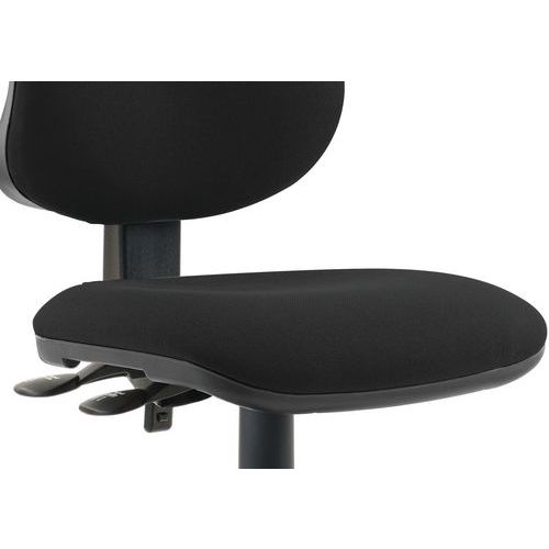 Breathable, height-adjustable mesh back. Height adjustable, padded lumbar support. Dished seat design. Twin lever mechanism for seat height and backrest tilt adjustment. Built to EN1335 standards. ANSI/BIFMAX 5.1-2017 strength and endurance tested. PCB: Permanent contact backrest feature. The 5-star base with castors allows the chair to easily move to where it is needed. The eclipse plus 2 deluxe mesh back has a wider backrest and an additional height adjustable lumbar pad.