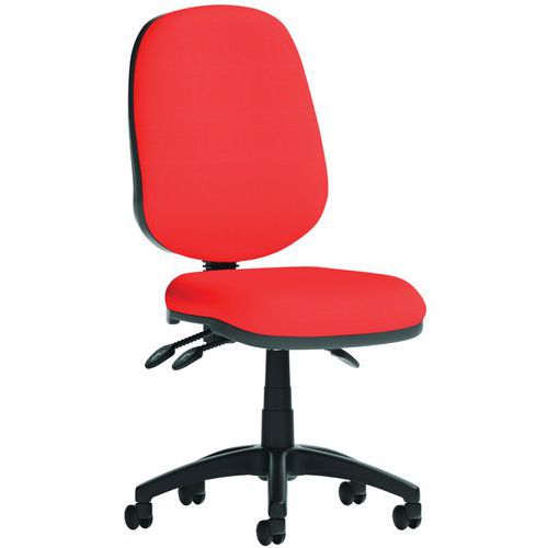 Breathable, height-adjustable mesh or fabric backs. Height adjustable, padded lumbar support. Dished seat design. Triple lever mechanism for seat height, seat and backrest tilt adjustment. Built to EN1335 standards. ANSI/BIFMAX 5.1-2017 strength and endurance tested. PCB: Permanent contact backrest feature. The 5-star base with castors allows the chair to easily move to where it is needed.