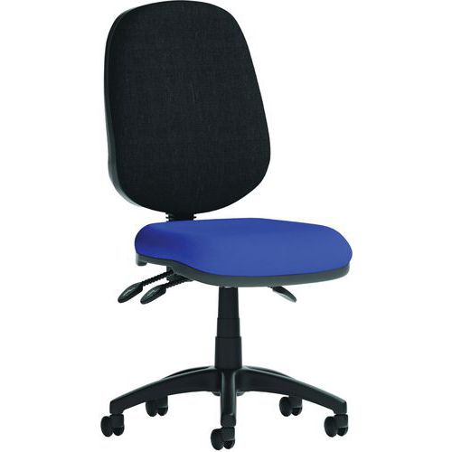 Breathable, height-adjustable mesh or fabric backs. Height adjustable, padded lumbar support. Dished seat design. Triple lever mechanism for seat height, seat and backrest tilt adjustment. Built to EN1335 standards. ANSI/BIFMAX 5.1-2017 strength and endurance tested. PCB: Permanent contact backrest feature. The 5-star base with castors allows the chair to easily move to where it is needed.