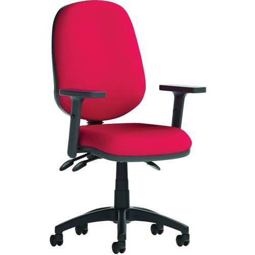 Breathable, height-adjustable mesh or fabric backs. Height adjustable, padded lumbar support. Dished seat design. Triple lever mechanism for seat height, seat and backrest tilt adjustment. Built to EN1335 standards. ANSI/BIFMAX 5.1-2017 strength and endurance tested. PCB: Permanent contact backrest feature. The 5-star base with castors allows the chair to easily move to where it is needed.