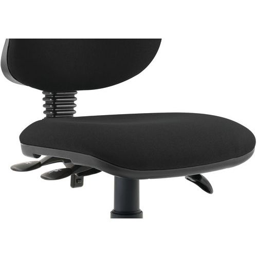 Breathable, height-adjustable mesh or fabric backs. Height adjustable, padded lumbar support. Dished seat design. Triple lever mechanism for seat height, seat and backrest tilt adjustment. Built to EN1335 standards. ANSI/BIFMAX 5.1-2017 strength and endurance tested. PCB: Permanent contact backrest feature. The 5-star base with castors allows the chair to easily move to where it is needed.