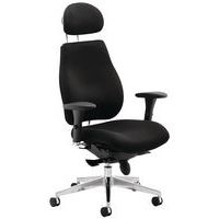 Ergonomic 24-hour high-back manager's chair with adjustable headrest and lumbar support.