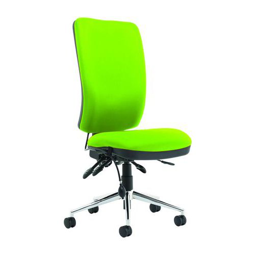 Approved by UK chiropractic doctors for posture support. Height adjustable backrest with fixed lumbar support. Contoured foam seat and back for extra comfort and support. Triple lever Synchro tilt mechanism. Seat slide. Polished chrome 5-star base with robust castors.