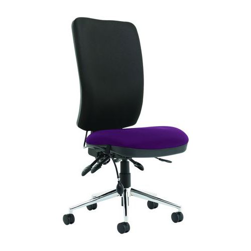 Approved by UK chiropractic doctors for posture support. Height adjustable backrest with fixed lumbar support. Contoured foam seat and back for extra comfort and support. Triple lever Synchro tilt mechanism. Seat slide. Polished chrome 5-star base with robust castors.