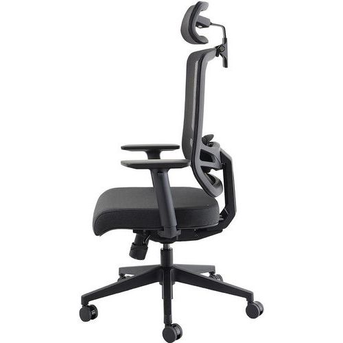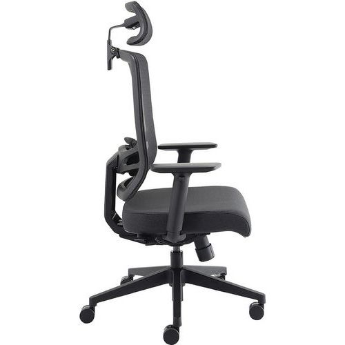 Features independent backrest adjustment. Adjustable lumbar support. Includes seat slide adjustment. Height adjustable arms with soft padding. Robust frame and a 5-star base.