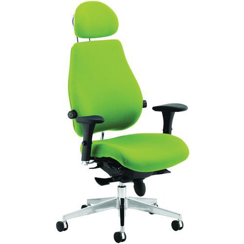 Approved by UK chiropractic doctors for posture support. Height adjustable backrest with fixed lumbar support. Contoured foam seat and back for extra comfort and support. Triple lever Synchro tilt mechanism. Seat slide. Polished chrome 5-star base with robust castors.