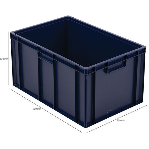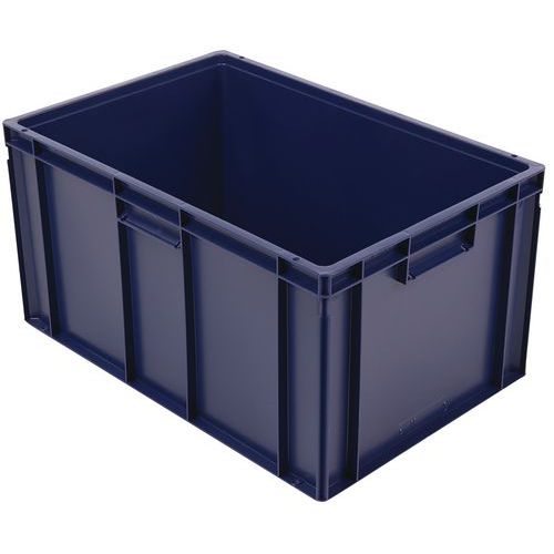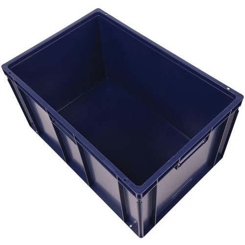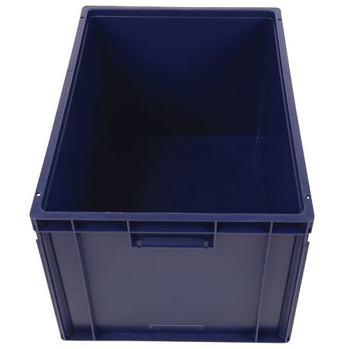 Euro container with good stacking stability. Built-in handles: easy to move with no loss of capacity. Resistance to oils, greases and many chemicals.