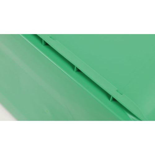 The Eurowave range is suitable for all your daily tasks. Ergonomic and easy to handle container. Robust container thanks to design, which ensures great stability in daily use. Integrated recessed handles for comfortable use. European standard stackable container with or without lid. Environmentally friendly range: regenerated materials only. More lightweight container thanks to reduced use of plastic for production.