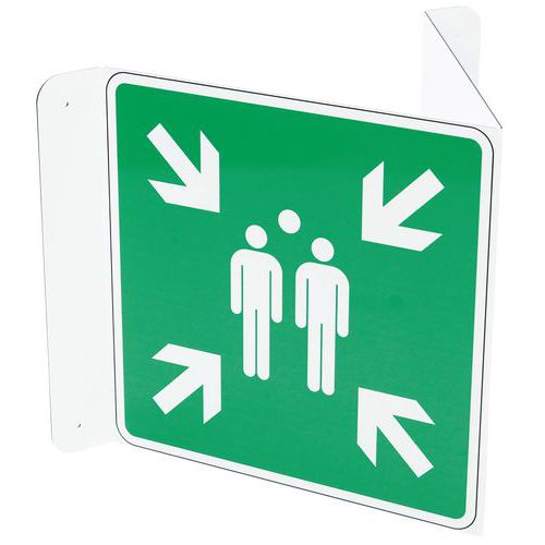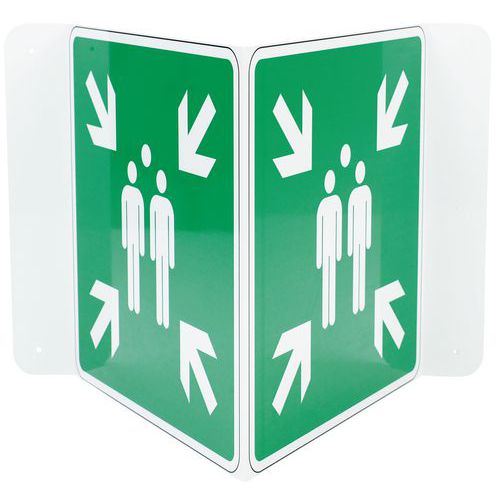 Set up an assembly point and organise the evacuation of your staff now with this V-shaped evacuation sign.