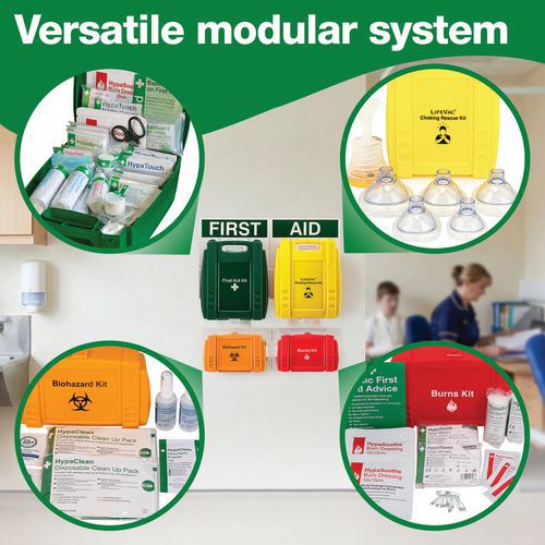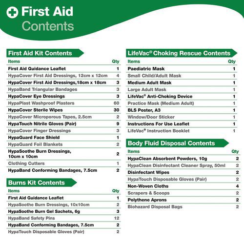 Complete first aid, burn, biohazard and choking protection for workplace safety
