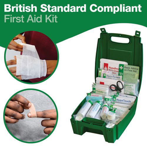 - Includes a British Standard First Aid Kit for broad workplace accident coverage.