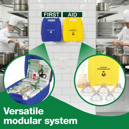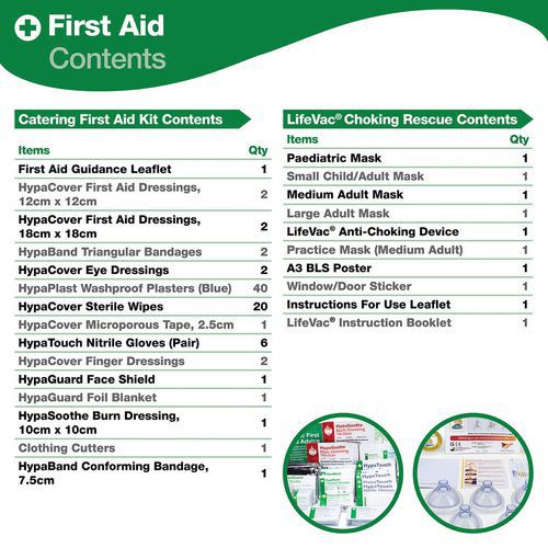 - Combines a British Standard catering first aid kit with an advanced anti-choking device.