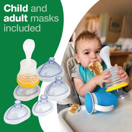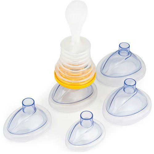 - Includes five masks: paediatric, small, medium, large and a practice mask.