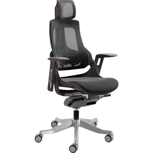 The frame is designed to offer orthopaedic support. Synchronised glide tilt mechanism. Anti-shock tilt function. The built-in lumbar support adjusts in depth to suit the user. Height adjustable backrest. Weight tilt tension control. Aluminium 5-star base. The optional arms both pivot and are height adjustable. Features an optional headrest.