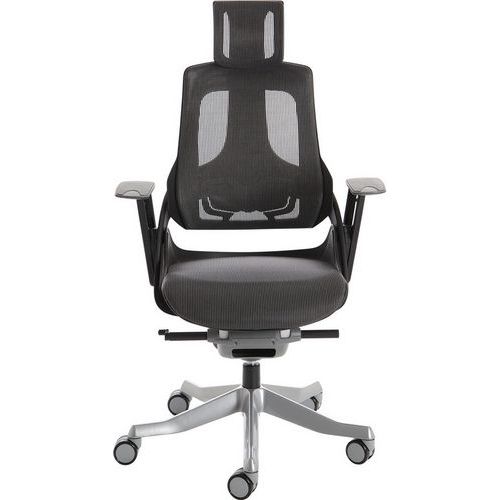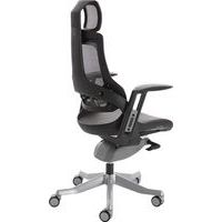 The frame is designed to offer orthopaedic support. Synchronised glide tilt mechanism. Anti-shock tilt function. The built-in lumbar support adjusts in depth to suit the user. Height adjustable backrest. Weight tilt tension control. Aluminium 5-star base. The optional arms both pivot and are height adjustable. Features an optional headrest.
