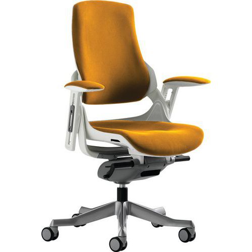 The frame is designed to offer orthopaedic support. Synchronised glide tilt mechanism. Anti-shock tilt function. The built-in lumbar support adjusts in depth to suit the user. Height adjustable backrest. Weight tilt tension control. Aluminium 5-star base. The optional arms both pivot and are height adjustable. Features an optional headrest.