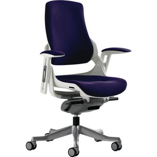 The frame is designed to offer orthopaedic support. Synchronised glide tilt mechanism. Anti-shock tilt function. The built-in lumbar support adjusts in depth to suit the user. Height adjustable backrest. Weight tilt tension control. Aluminium 5-star base. The optional arms both pivot and are height adjustable. Features an optional headrest.